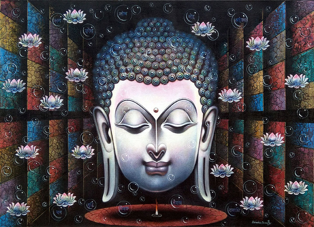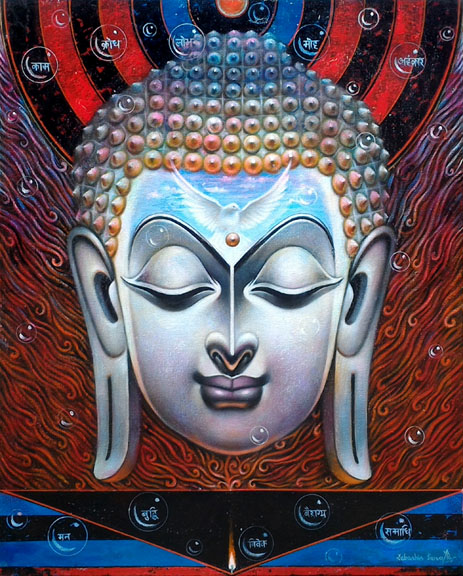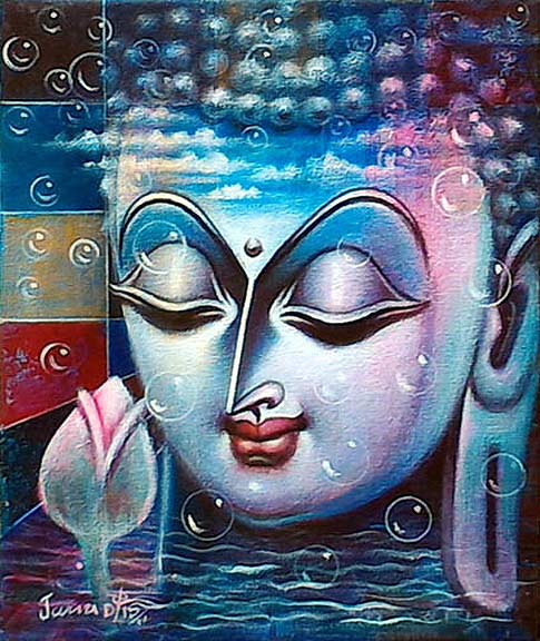 Buddha's sensation: Represents buddhahood, means, a state of attentiveness to the mind that becomes the reformer of the conscious & unconscious mind, while the sensations of the body become life consciousness; that is, the images of buddhahood floating face represents of air bubble which are full of emptiness or empty into fullness...